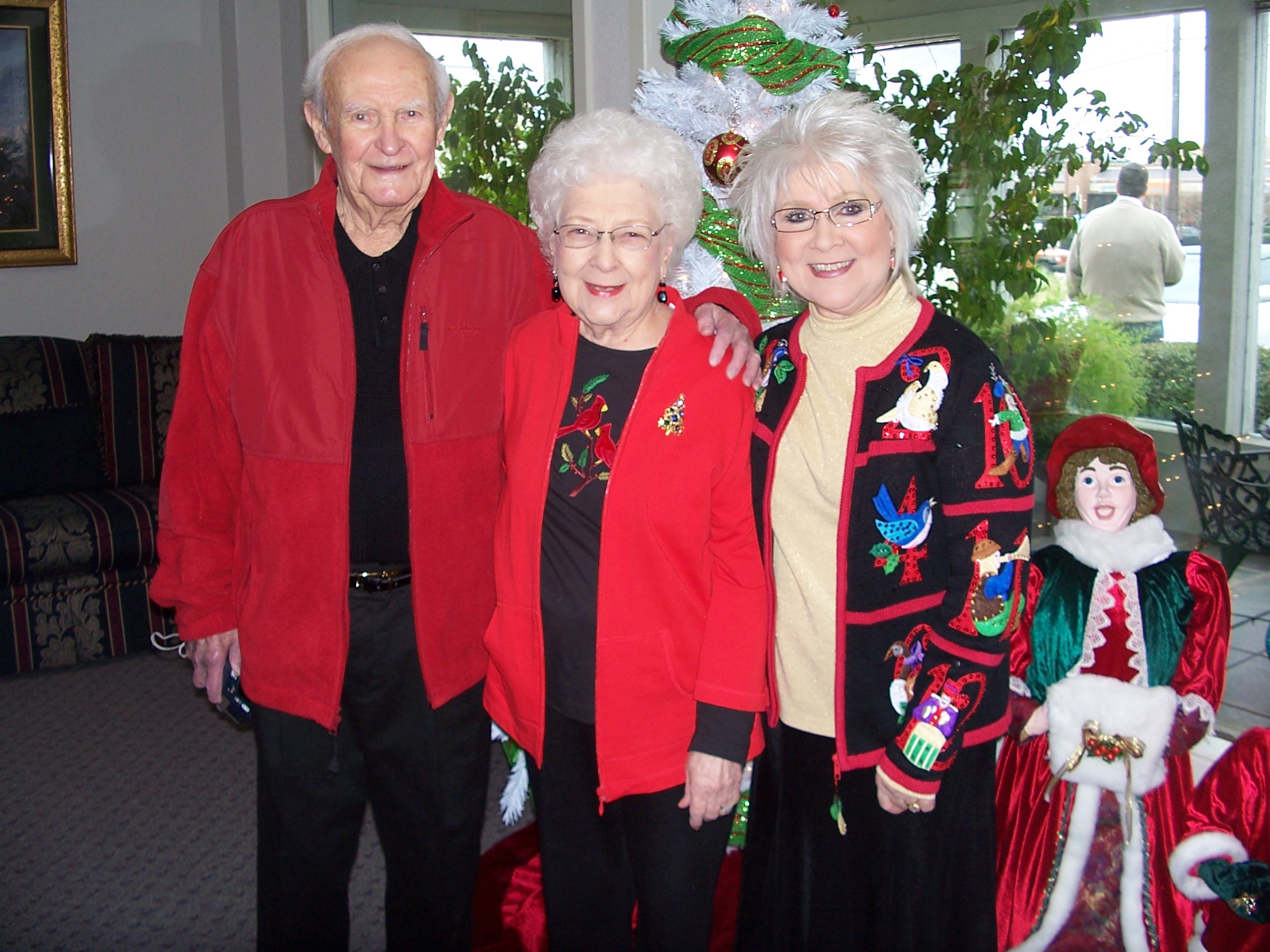 Whew, the anticipation of Christmas has passed now. Christmas was fabulous! Everyone in the family was at our house for the Christmas Day Dinner! (except Taylor and Cynthia). I have the week off and I am working just as hard as a turk!!!! Not even going to start taking down the Christmas decorations, I think I deserve being able to look at them with no stress of schedule!!!! Kaela and Kylie looked so precious on Christmas dressed alike in their little Christmas dresses that Nana and Pop gave them!!! Mother and Daddy (and Shane) were here from the 20th till the 26th. The weather hasn’t been bad, just cold enough to have the fireplace going!!! I baked about 14 different sweets this year! It was a wonderful Christmas! Kept Kylie yesterday and sure enjoyed having her. James was off too, so we had fun the whole day! Love………………..Gigi
